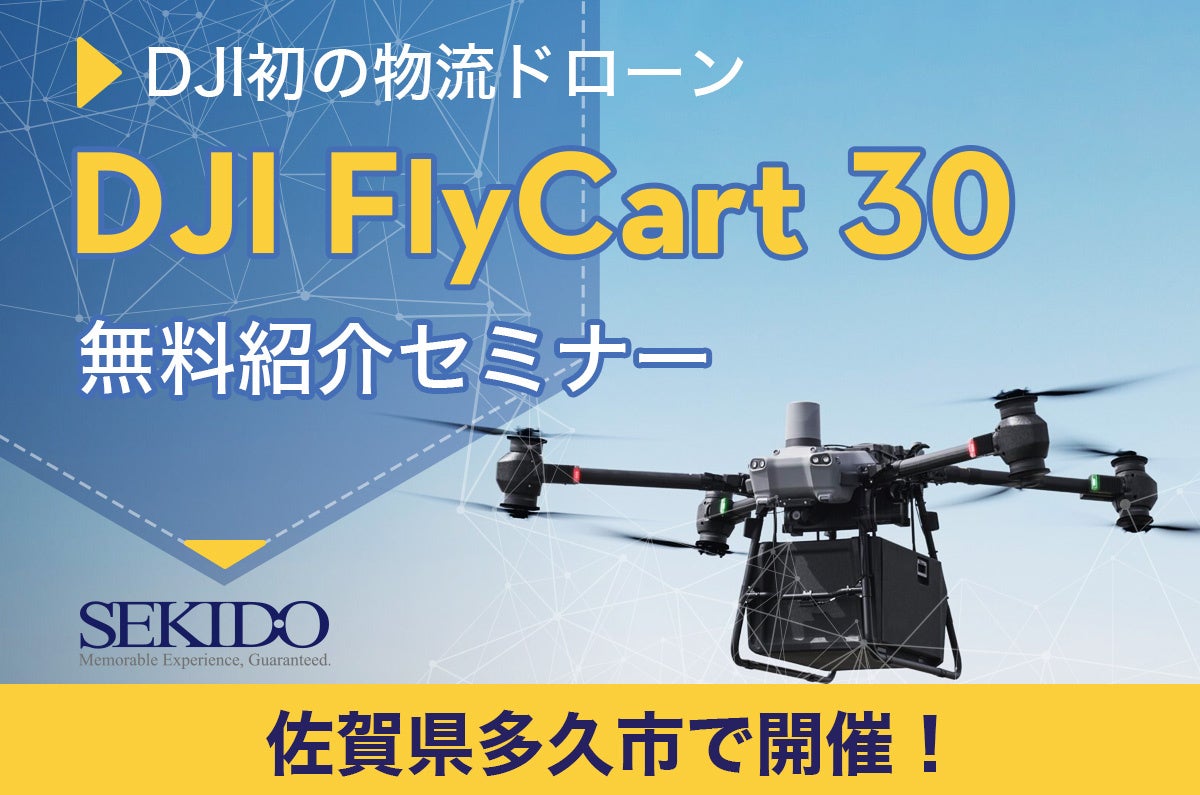 DJI(ディージェイアイ)正規販売代理店としてドローンビジネスの最先端を支える株式会社セキド(本社:東京都港区、代表取締役:大下貴之、以下セキド)では、株式会社アイテム(佐賀県多久市、代表取締役:山本茂、以下アイテム)と共同で、2025年1月23日(木)14時より佐賀県多久市にて、DJI初の物流ドローン「DJI FLYCART 30(フライカート 30)」の魅力や飛行性能をデモフライトでご紹介する「DJI FlyCart 30 運搬フライト実演セミナー」を開催いたします。