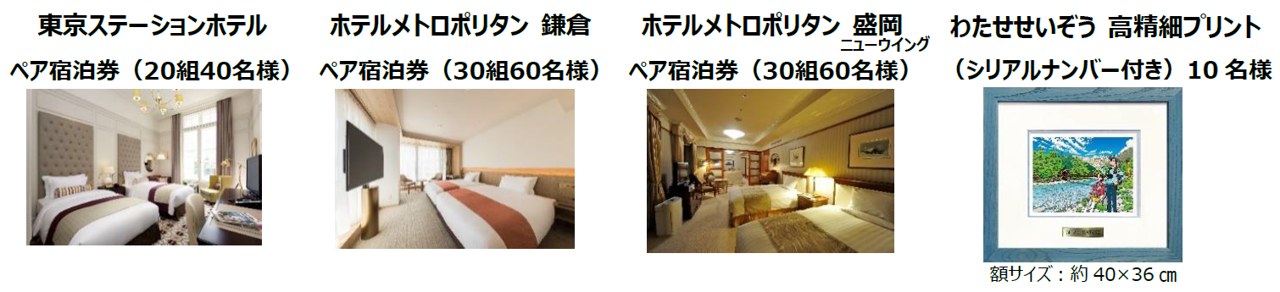 ○2024年5月1日から「大人の休日倶楽部(※1)」Web入会キャンペーンがスタートします。「JCBブランド」を選択いただいた方には入会特典として、もれなくJRE POINT3,000ポイントをプレゼント!(※2)さらには入会後「大人の休日倶楽部」カードのご利用金額が合計50,000円(税込)以上の方には、東京ステーションホテル・ホテルメトロポリタン 鎌倉・ホテルメトロポリタン 盛岡ニューウイングのペア宿泊券や、「大人の休日倶楽部」会員限定パスやキャンペーン等の宣伝展開を行っている「わたせせいぞう氏」の高精細プリント(シリアルナンバー付き)を抽選でプレゼントします! ○ぜひこの機会に、50歳からの旅と暮らしを応援する「大人の休日倶楽部」の入会をご検討ください。 |