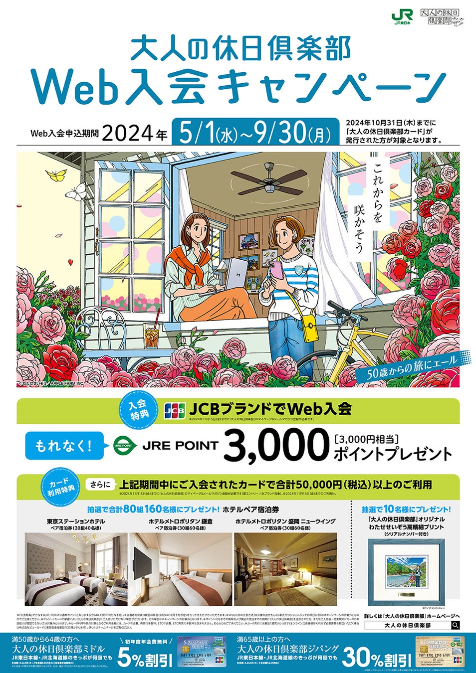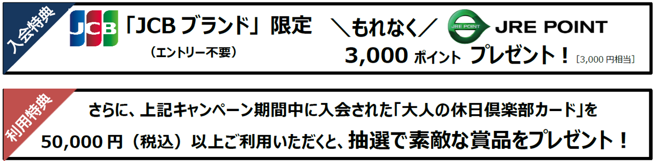 \JCBブランド入会で‟もれなく“JRE POINT 3,000ポイントプレゼント!/「大人の休日倶楽部」Web入会キャンペーンを実施します!