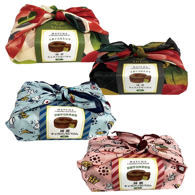 生活関連用品の企画・開発・販売を行う株式会社ドウシシャ(大阪本社:大阪市中央区、代表取締役社長:野村 正幸、以下 ドウシシャ)は、紅茶に合うスイーツブランド『T.D.Early(ティーディーアーリー)』を展開しています。この度、日本の伝統を大切に和雑貨などを取り扱う株式会社くろちく(本社:京都市中京区、代表取締役社長:黒竹 哲也、以下 くろちく)とコラボレーションを実施し、京都くろちくのハンカチで包んだサステナブルな京都土産「T.D.Early 宇治抹茶キャラメリゼバウム」を、2月27日(金)から、京都駅構内2店舗にて先行販売します