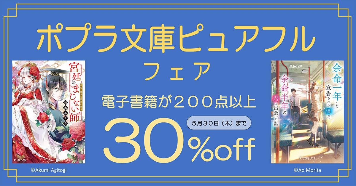 2024年5月17日(金)から5月30日(木)まで、電子書籍フェア「ポプラ文庫ピュアフル フェア」を開催いたします。人気タイトルを中心に200点以上の対象電子書籍が30%OFFの価格となるポプラ文庫ピュアフル最大規模の割引セールです!