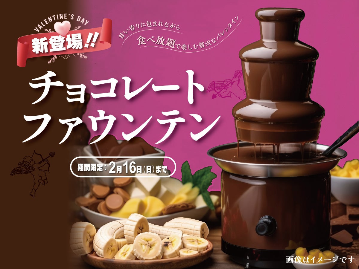 この度、2025年2月1日(土)~ 2025年2月16日(日)の期間限定にて、年に一度のバレンタインの思い出作りに最適!デザートコーナーに「チョコレートファウンテン」が登場いたします!