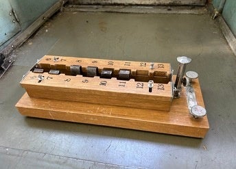 (※)実際の運転訓練時に過去使用されていた衝動板(ブレーキ時の衝動に応じて大きさの異なるおもりが倒れる装置)を使用。