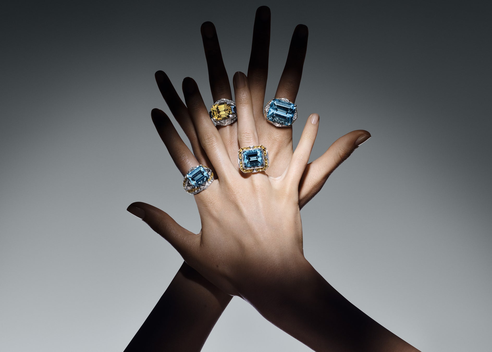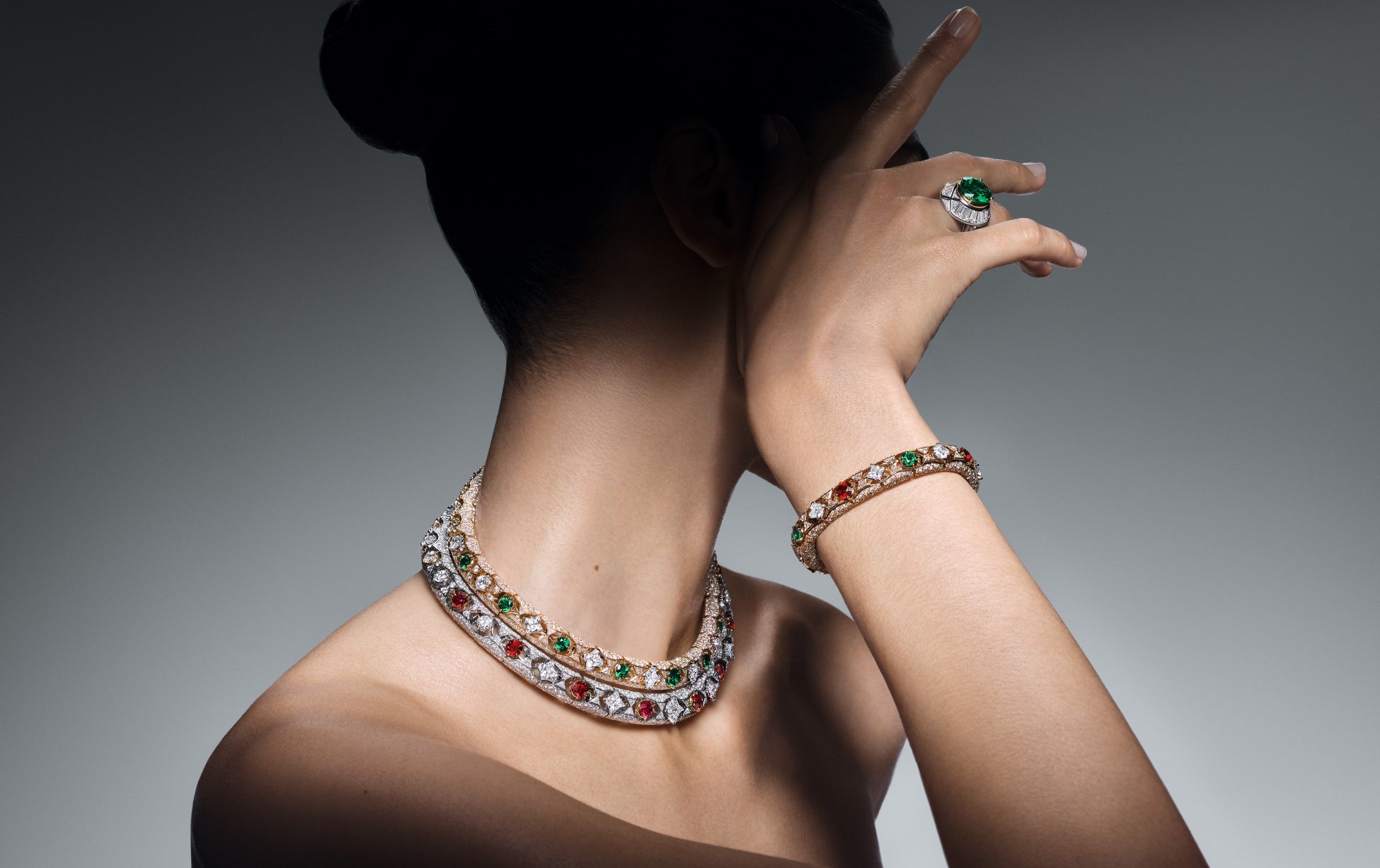 や「Flowers(フラワー)」まで、テーマごとにさまざまなテクスチャーやレイヤー、そしてもちろん最も魅力的な宝石の数々の、魅惑的なコンビネーションやコントラストが生み出されています。また、ジュエリーは