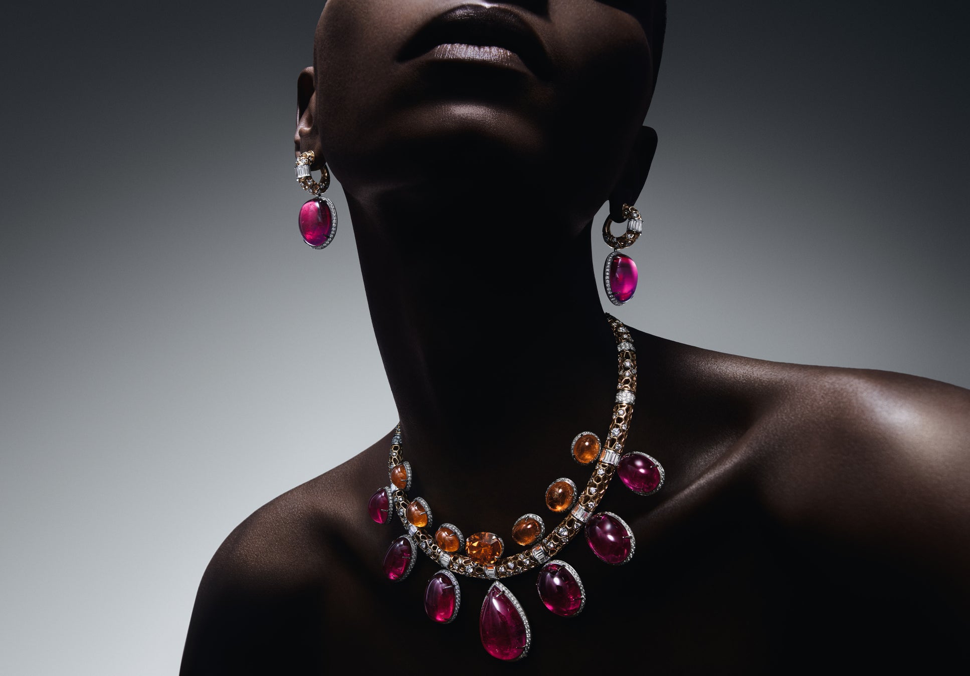 ますます自由で多様となり、多くが形を変えて複数の方法でスタイリングできるようにデザインされています。ここには、フランチェスカが過去5年間にわたり推進し続けてきた「トランスフォーマビリティ」という方向性が具体的に表現されています。「私たちは、最も美しいストーンを見つけるという驚くほど素晴らしいチャレンジ精神を持っています。『Deep Time』では、溶岩から形成されたもの、さまざまな大陸に由来するもの、あるいはあるアイディアを象徴するものなど、すべてのストーンが各テーマと結び付いています。『Deep Time』は、過去だけでなく、自然の美しさや生命の信じ難いほどの儚さへの賞賛でもあるのです」とフランチェスカは語ります。