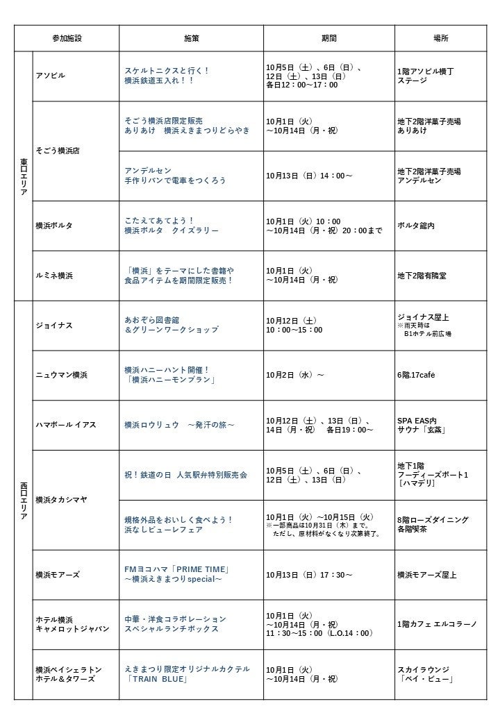 鉄道と共に発展してきた横浜にちなんで、参加施設が「鉄道の日」のお祝いとして、鉄道やこの街の魅力を感じていただける施策を実施。