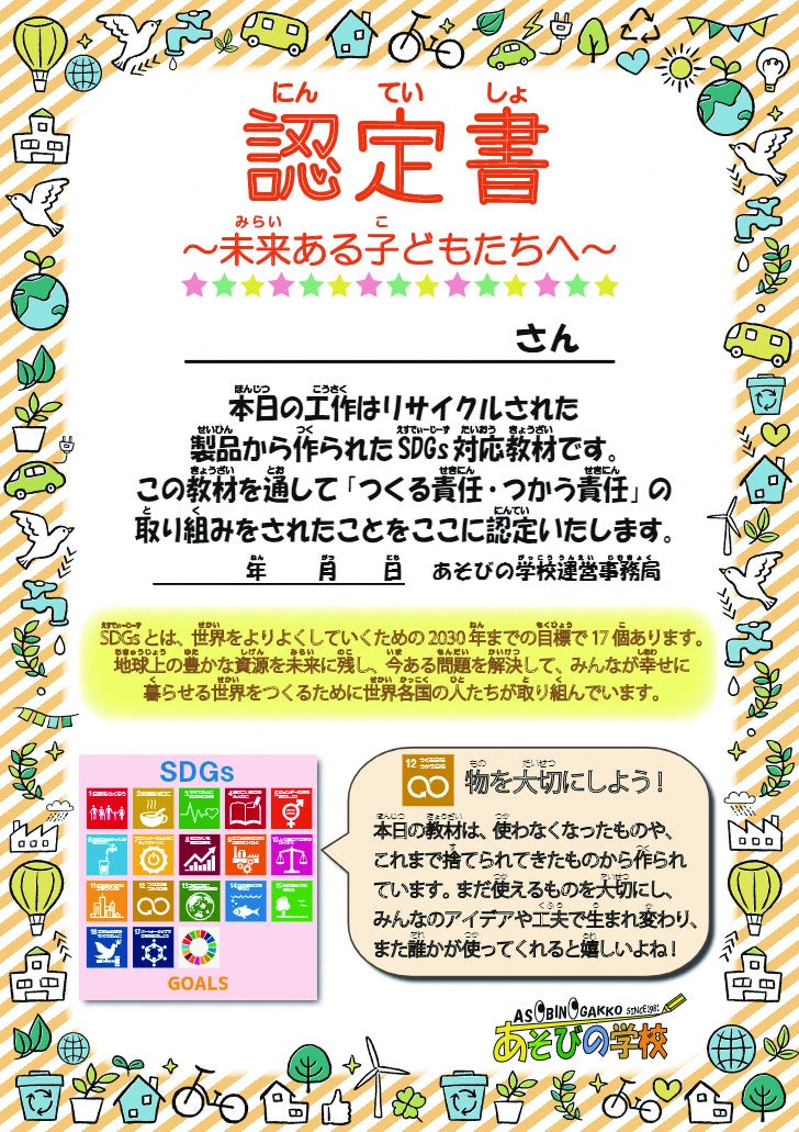 パーツは資源を再利用して作られており完成後にSDGs認定書もプレゼントします!