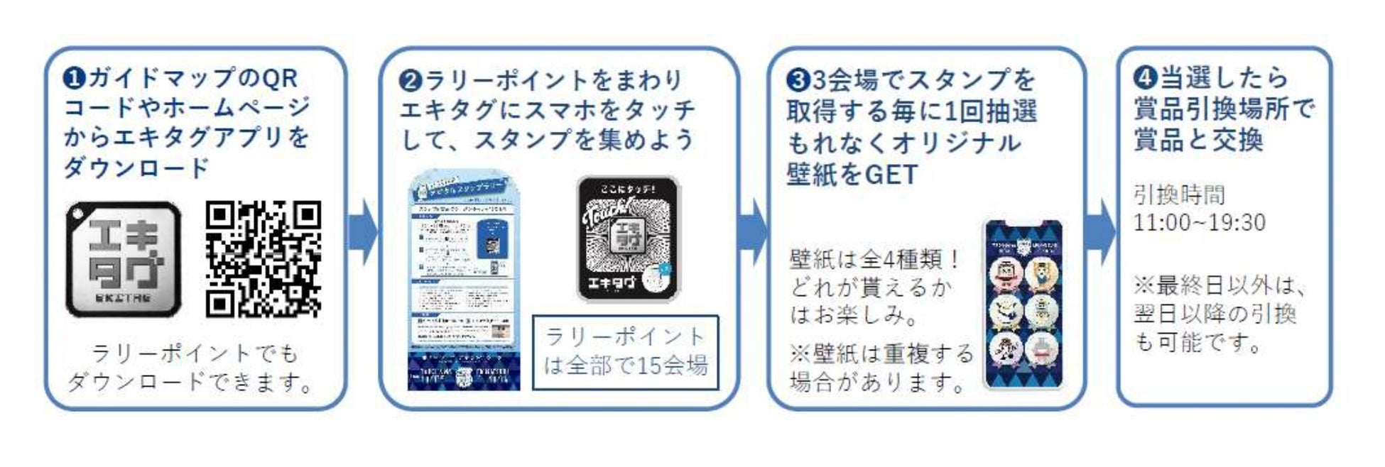 ●概要: 参加施設のラリーポイントでエキタグにスマホをタッチするデジタルラリーを実施。