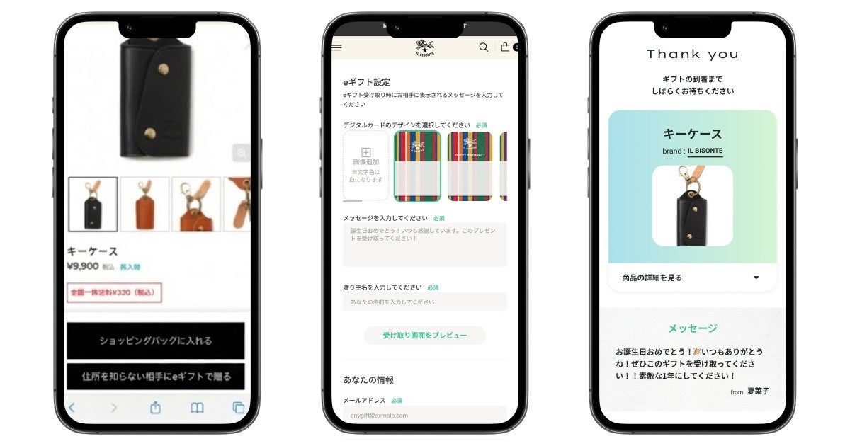 今回、AnyGiftの提供により、「IL BISONTE(イル ビゾンテ)日本公式オンラインストア」にて人気の商品がeギフトとして贈れるようになりました。