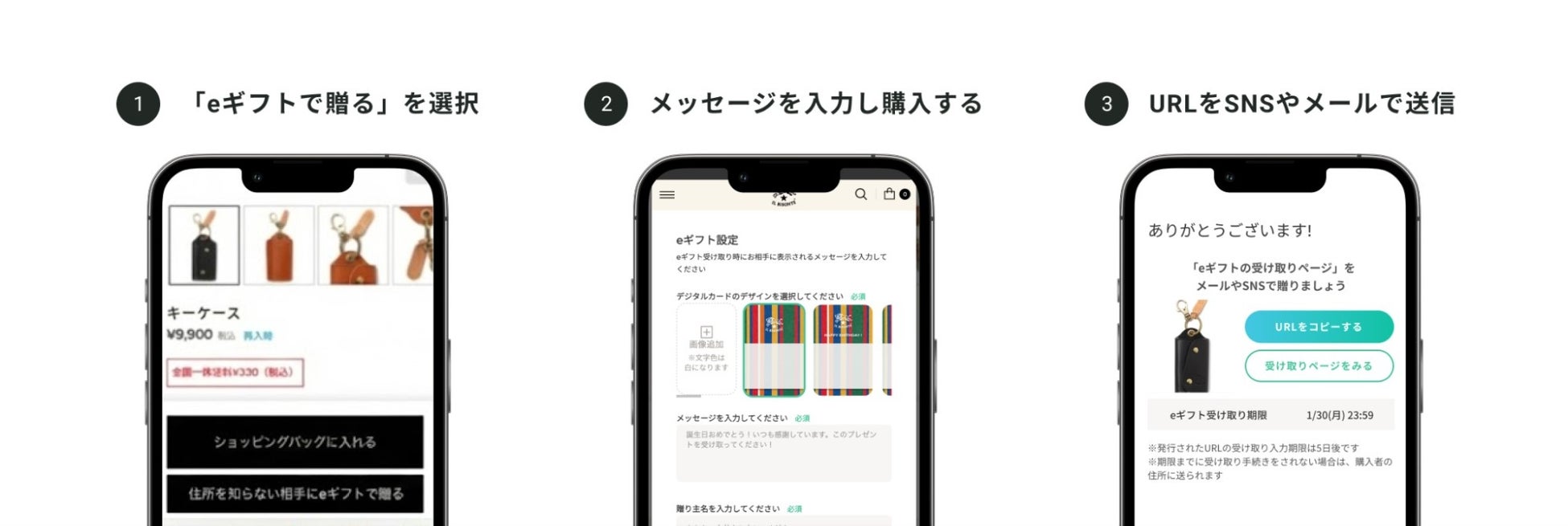3)購入が完了すると、eギフトの受け取りURLが発行されます。LINEなど各SNSやメールでURLを伝えることでeギフトを贈ることができます。