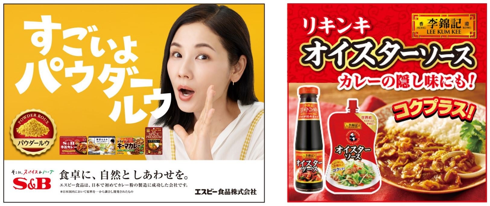 「すごいよ、パウダールウ」をキーワードにしたパウダールウシリーズと、カレーの隠し味としての使い方を提案するオイスターソースの広告を掲載します。