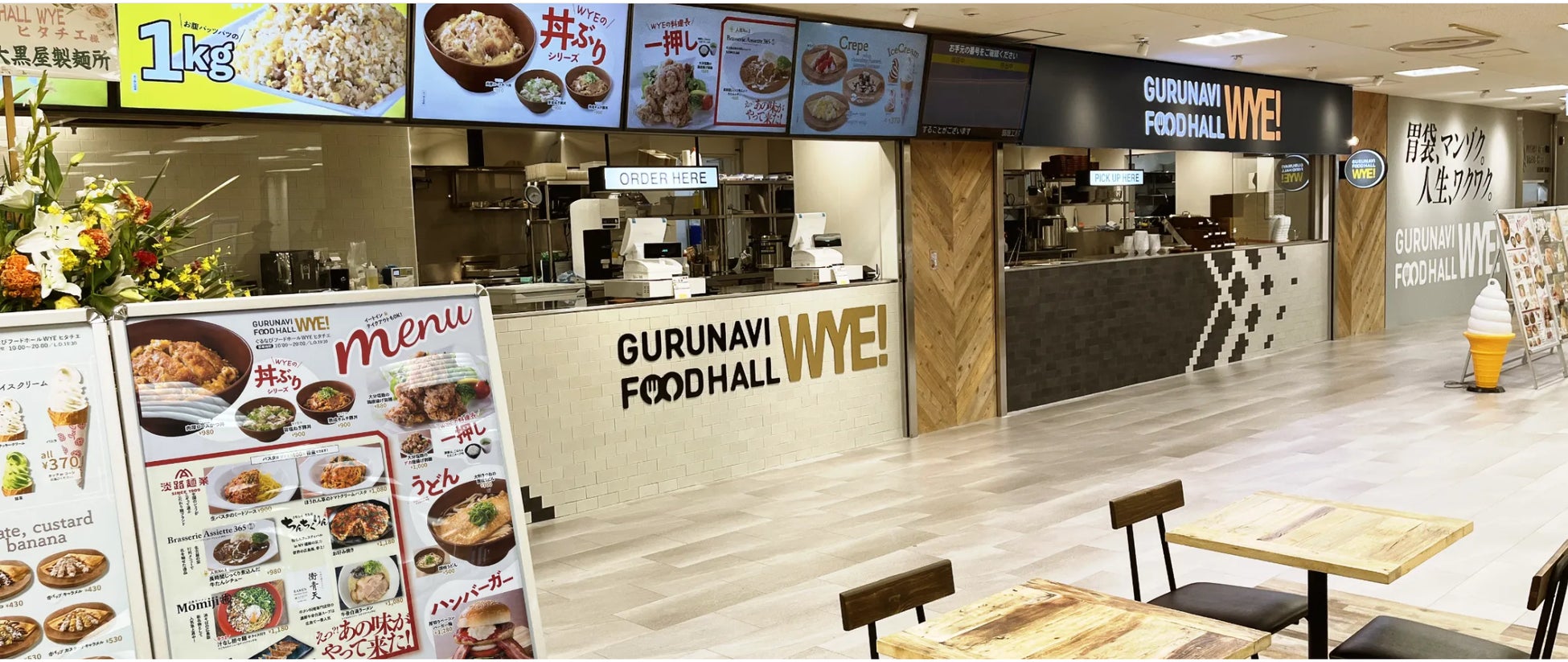 「GURUNAVI FOODHALL WYE ヒタチエ」は、茨城県日立市にある日立駅前大型商業施設「ヒタチエ」2階で展開しているフードコート。ぐるなび独自のネットワークを活用し、全国各地の飲食店から提供を受けて魅力あるメニューを提供しています。