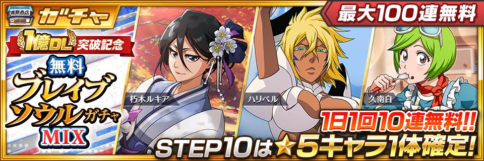 期間中、最大100連を無料で引ける「1億DL突破記念無料ブレイブソウルガチャーMIXー」を開催!