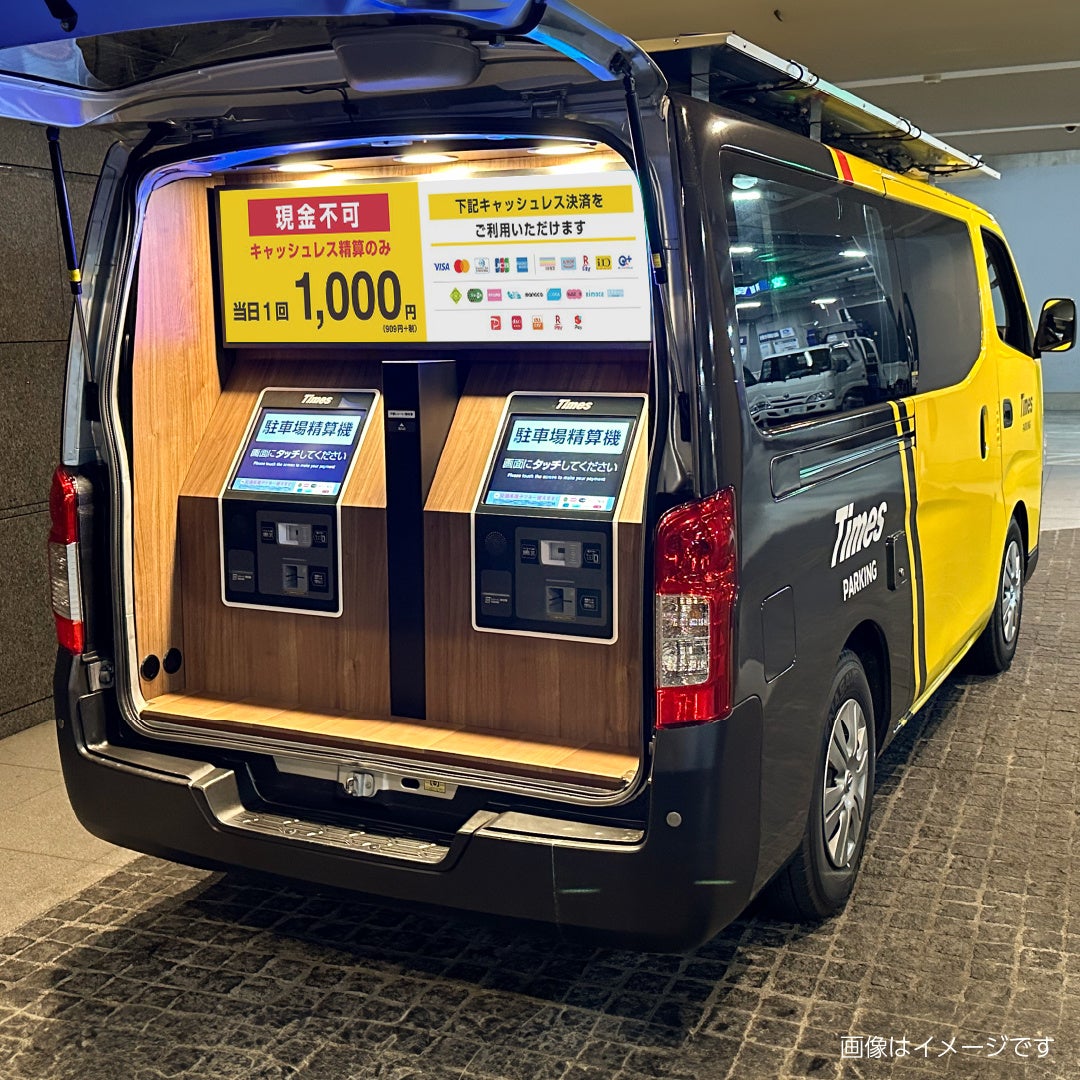 「タイムズパーキング キャラバン」は、キャッシュレス精算機や車両ナンバー認証カメラ、電源設備などを搭載した車両で、イベント開催などの一時的な駐車場需要時に駐車場用地へ出向き、短期間・臨時での駐車場運営を可能とする移動式駐車場管理サービスです。