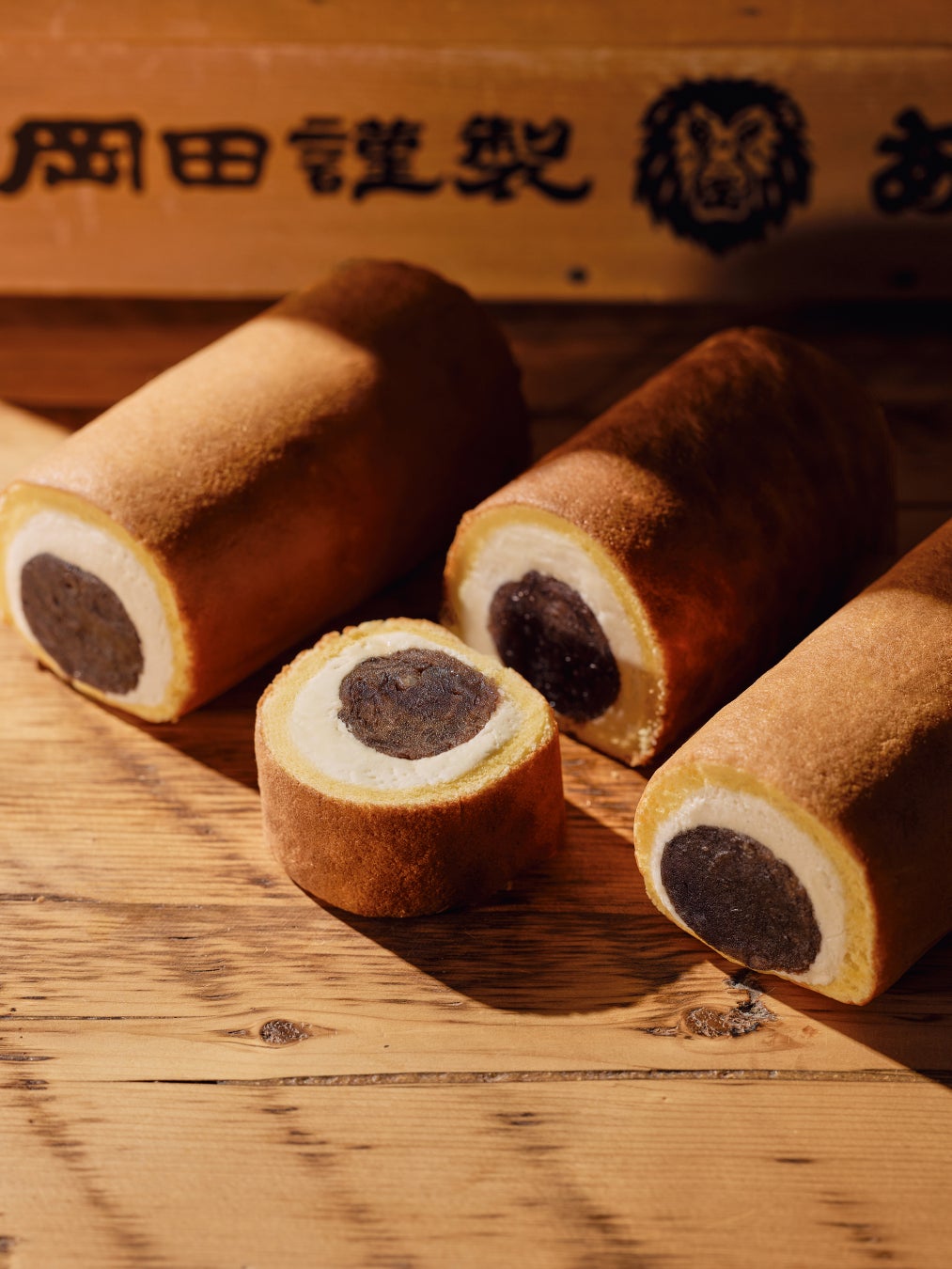それはしっとりと仕立てたカステイラ風の生地で、岡田謹製「餡子」と塩味のきいたバタークリームを惜しげもない量を一本に包みあげた粋な逸品。厚めに切り、贅沢にお召し上がりいただきたい。