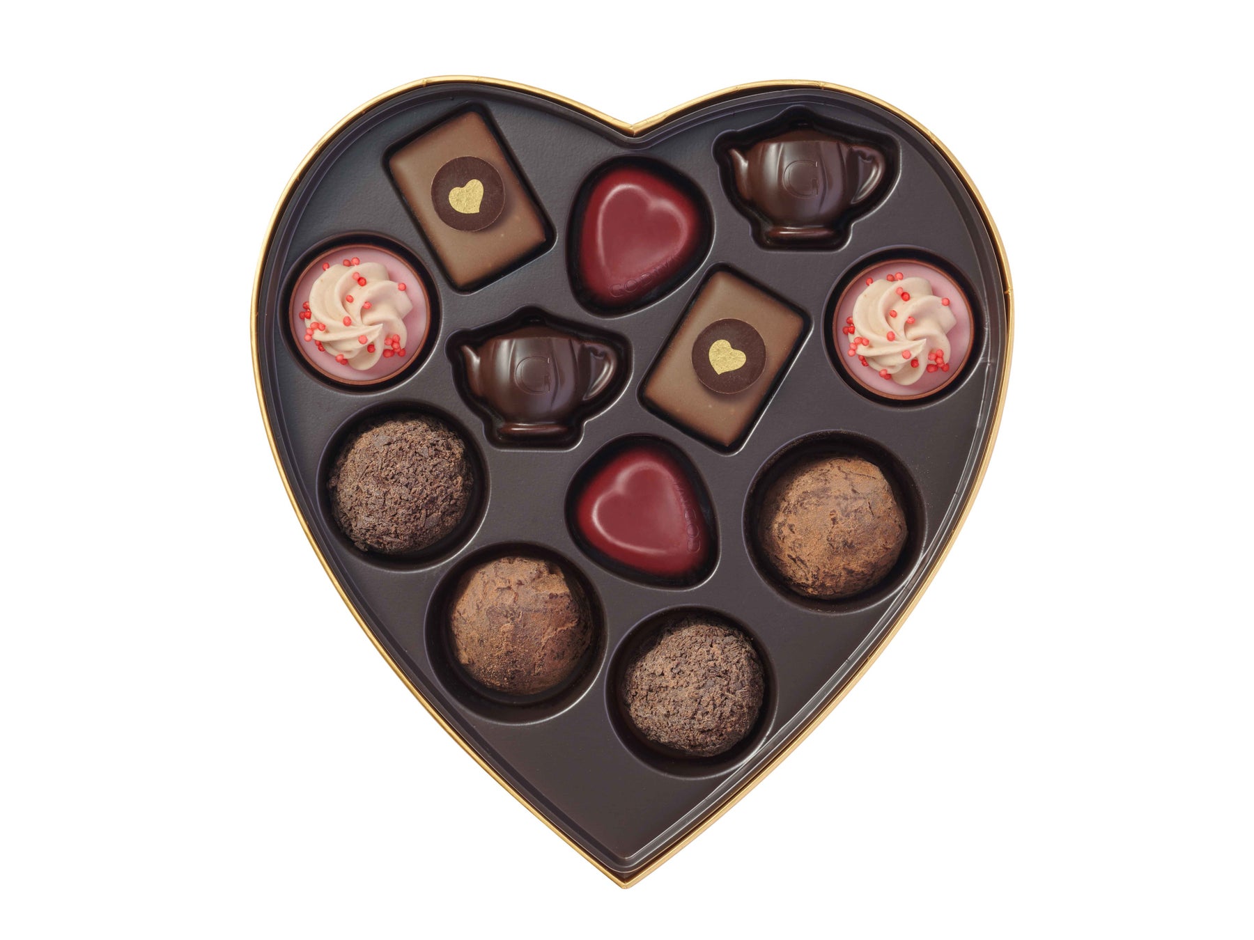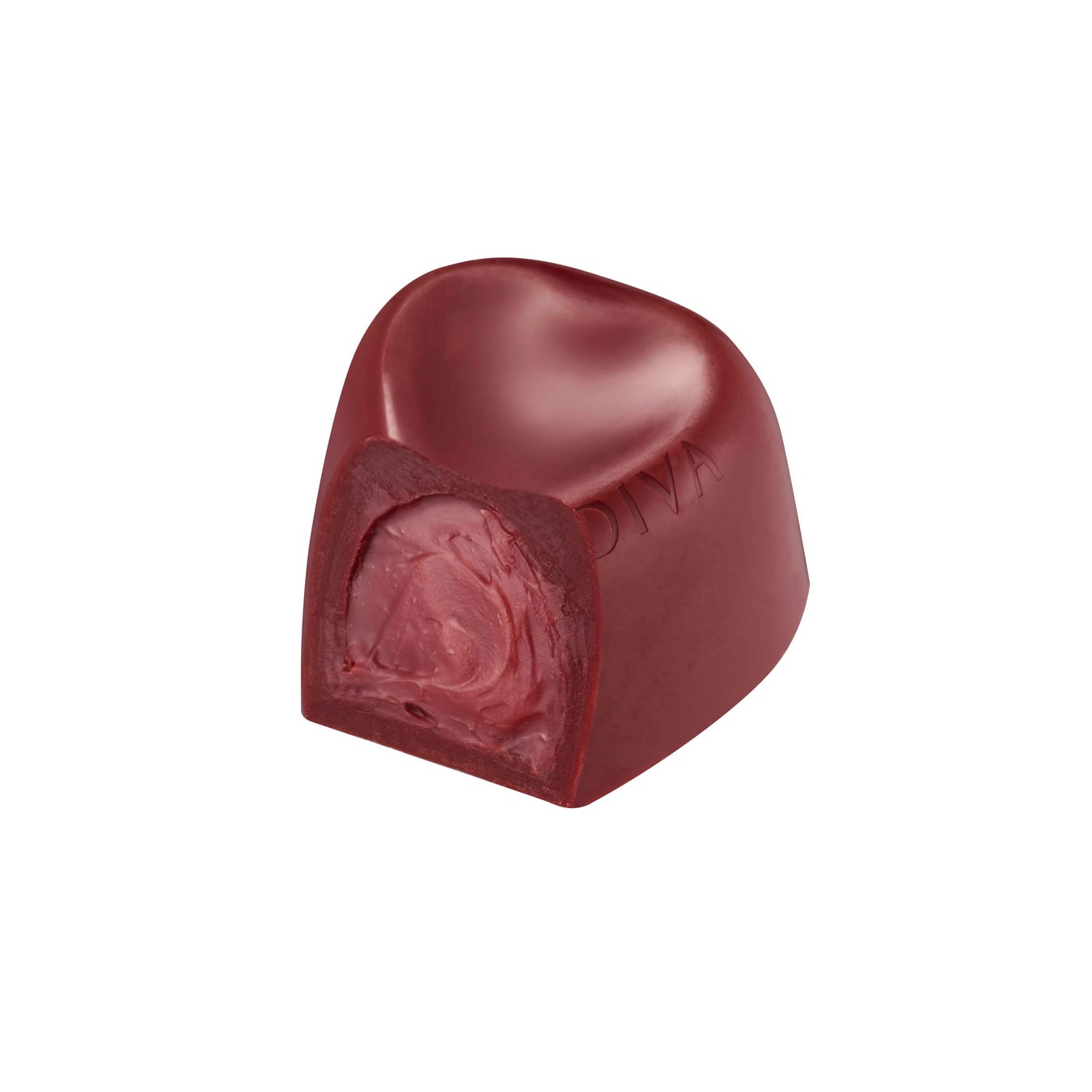 100周年を記念してリニューアルされたゴディバのシンボル「クール(ハート形のチョコレート)」。バーガンディーカラーの丸みを帯びたハート形のホワイトチョコレートに、爽やかな酸味のラズベリーガナッシュを閉じ込めました。まろやかな甘さの中に酸味が広がり、甘酸っぱい“キュン”とするようなやさしい気持ちを表現しました。