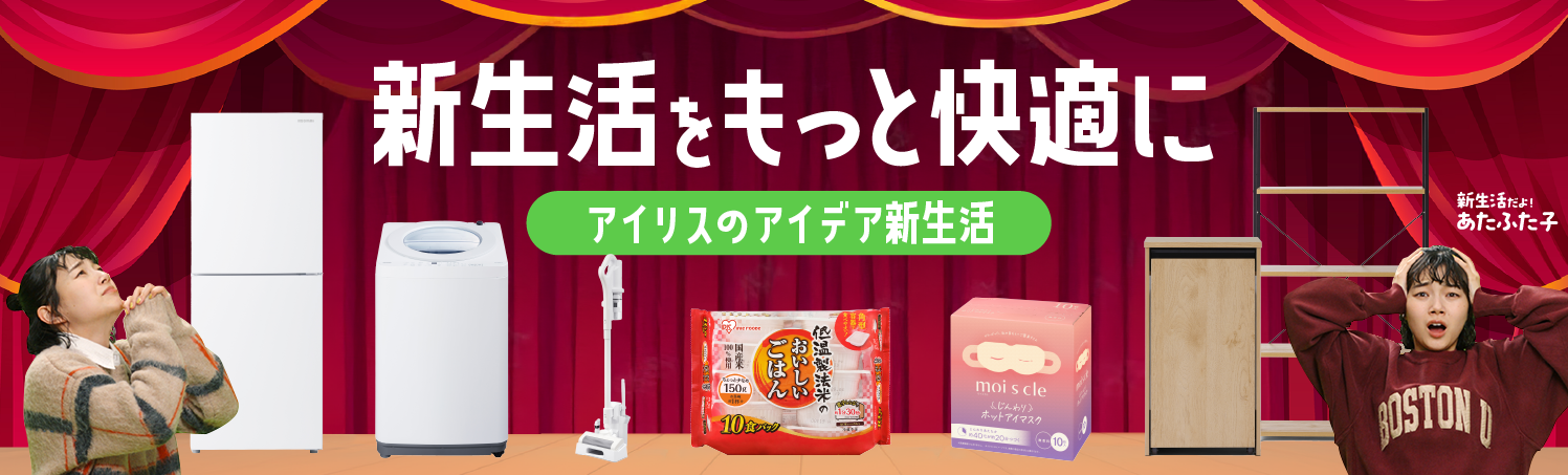 こうした実態を踏まえ、当社は一人暮らしの新生活をより快適で便利に過ごせるよう、アイデアシリーズを軸に新生活に最適な商品を提供します。家具・家電では、限られた空間を広く使えるスぺパ(スペースパフォーマンス)発想の家具シリーズ「HIRO BIRO series(ひろびろシリーズ)」をはじめ、充電スタンド付きで取り回しやすいスティッククリーナー、冷蔵庫容量のほぼ半分が冷凍室の「大凍量」シリーズ、最短約9分(※3)で「スキマ洗濯」ができる洗濯機「OSH fit(オッシュ フィット)」シリーズなど多忙な日常に対応できる商品を品揃えしています。日用品においては、電子レンジで約1分半(※4)加熱するだけで炊き立てのようなごはんが食べられるパックごはん「低温製法米のおいしいごはん®」、目元を優しく温めることでセルフケアの時間を簡単に取り入れられる「moi s cle(モイスクル) じんわりホットアイマスク」など日常生活を支える商品も品揃えしています。
