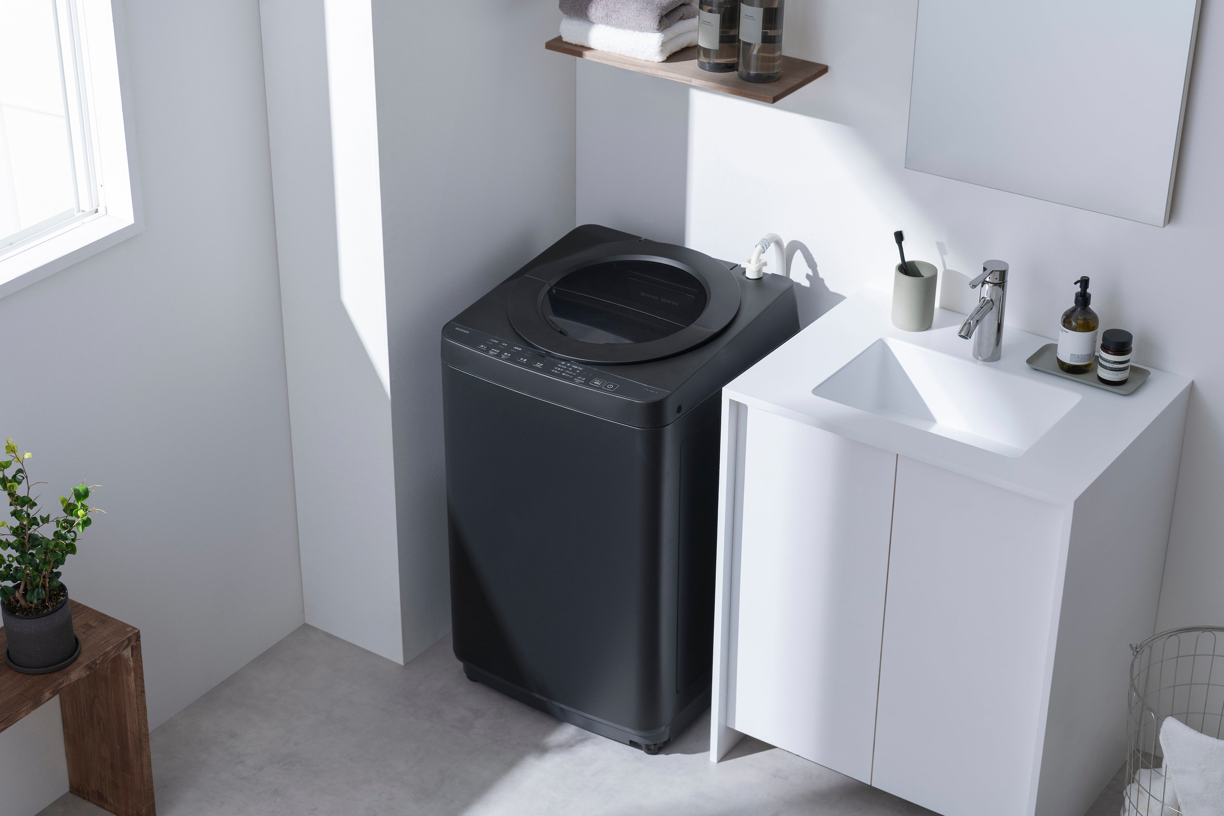 当社最速の約9分(※3)で洗濯を完了する特急(1kg)コース搭載の洗濯機です。新生活での「洗濯は時間がかかる、いつ洗濯したらいいのか分からない」といった洗濯時間の制約に対する悩み(※2)に応え、同容量帯の従来品と比べ洗濯時間を約8分短縮(※7)しており、忙しい朝の身支度中や夜遅く帰宅後の就寝準備中などでも洗濯が終わる「スキマ洗濯」を実現します。かくはん力に特化したウィングカーブ付きのパルセーター(※8)が短時間でも高い洗浄効果を発揮するほか、コンパクト性とマットな質感のデザインにより、一人暮らし向け物件に多い玄関横の洗濯機置き場にもスマートに設置できます。