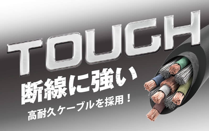 内部配線を増やした高密度配線構造、耐久性に優れた材質への変更や強化により、屈曲への耐久力を高めました。