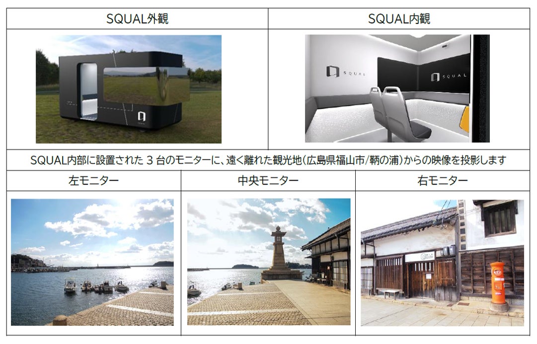 JTBは本実証に際し、観光領域におけるデジタル活用や新たな顧客体験価値の創造に向け、広島県福山市や鞆の浦観光情報センターと協議を重ねてまいりました。本実証では広島県・鞆の浦の観光ガイドと、愛知県の車室空間コンセプト「SQUAL(スクォール)」をつなぎ、相互通信を活用しながらリアルタイムでオンラインツアーを提供します。