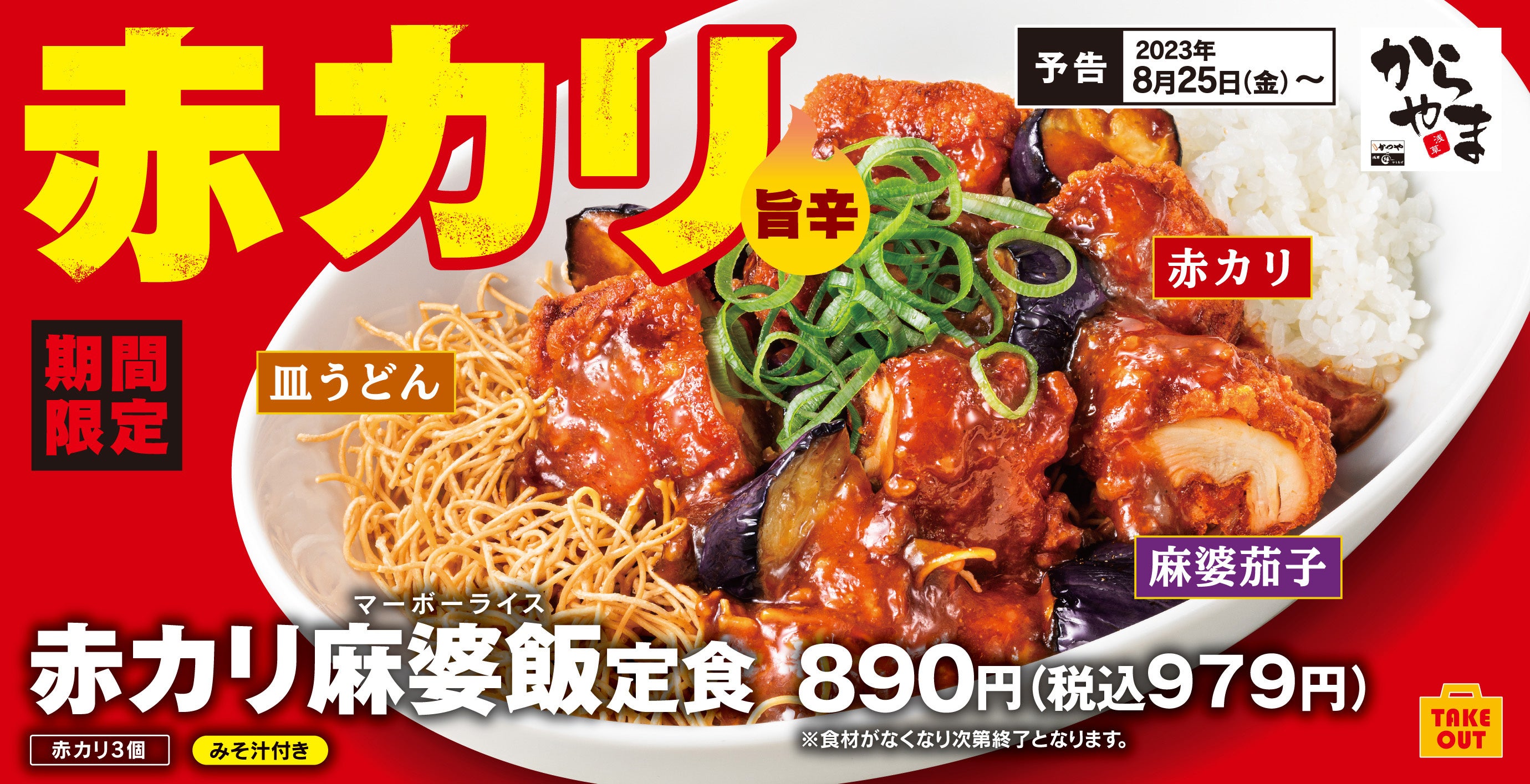 これを食べないと夏が終わらない!そんな声が聞こえてきそうな、年に1度の季節限定メニュー「赤カリからあげ」が、2023年8月25日(金)より「赤カリ麻婆飯定食」として、からあげ定食専門店「からやま」に期間限定で新登場。