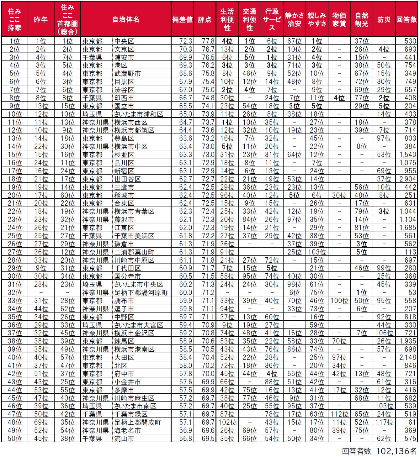 - 買って住んだ街(自治体)の住みここちランキング〈1位~50位〉