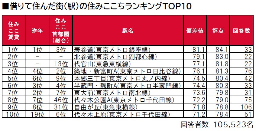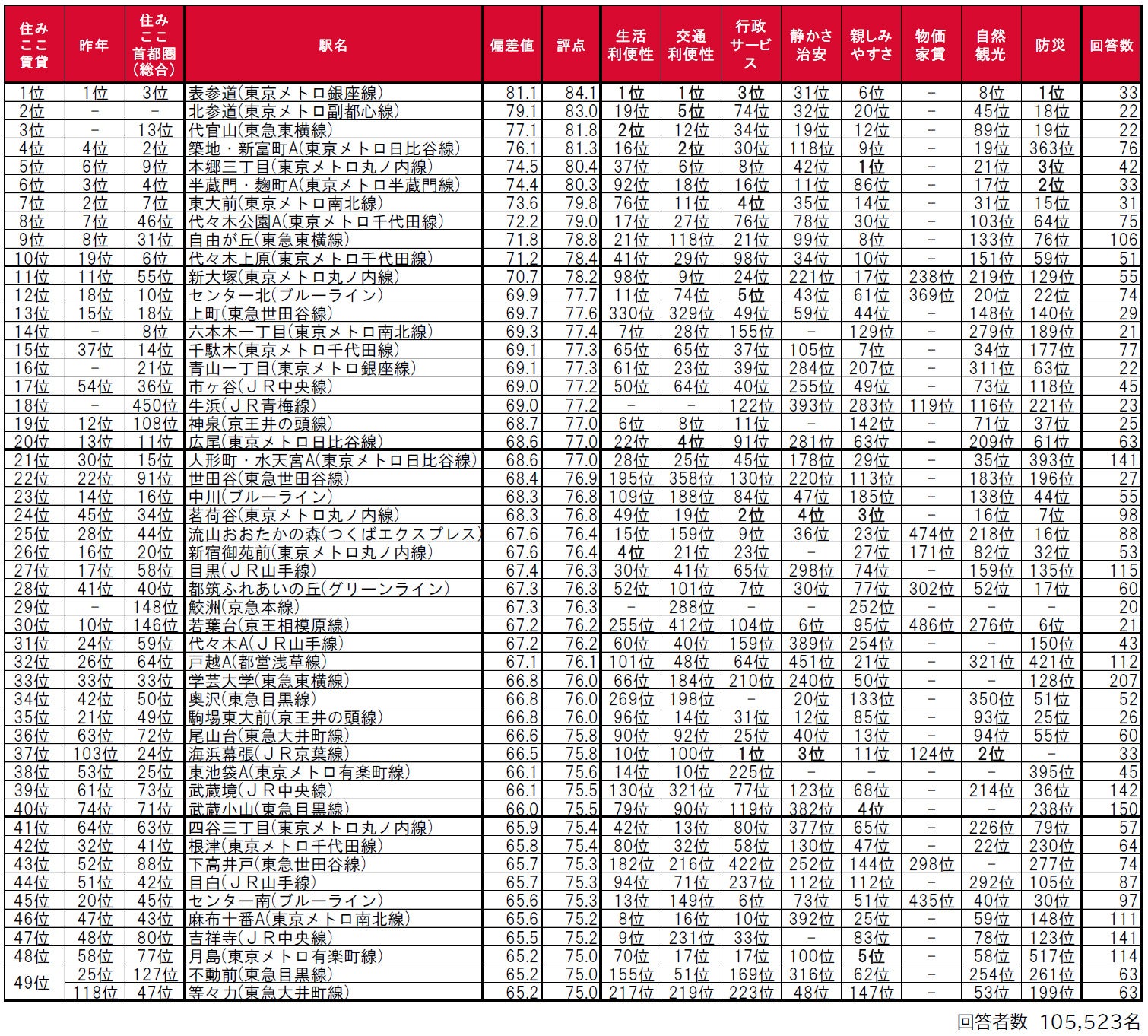 - 借りて住んだ街(駅)の住みここちランキング〈1位~49位〉