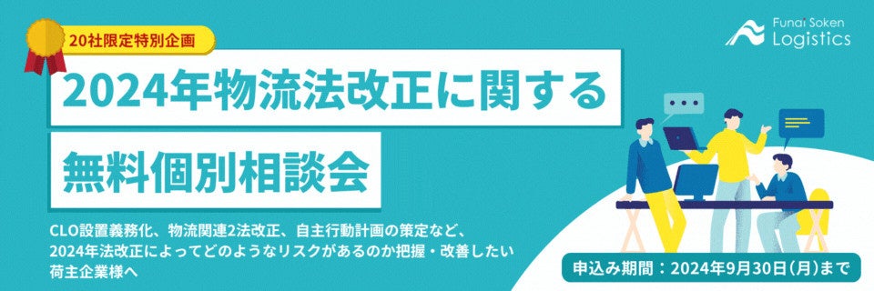 日本最大級の物流コンサルティングファーム 船井総研ロジ株式会社(本社:大阪市中央区、代表:橋本直行、以下「船井総研ロジ」)は、荷主企業(小売業・製造業・卸売業)の物流部門長・役員を対象にした「2024年物流法改正 無料個別相談会」を開催します。20社限定でお申込み受付中です。