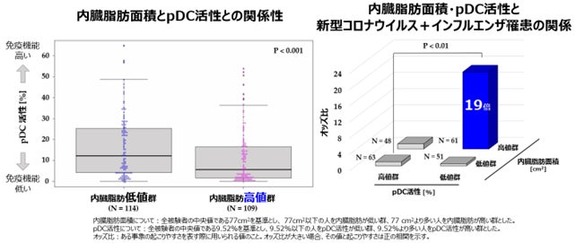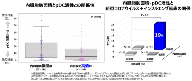 内臓脂肪が多くpDC活性が低い人は、新型コロナウイルス感染症・インフルエンザの罹患リスクが高いことを日本で初めて※1確認~