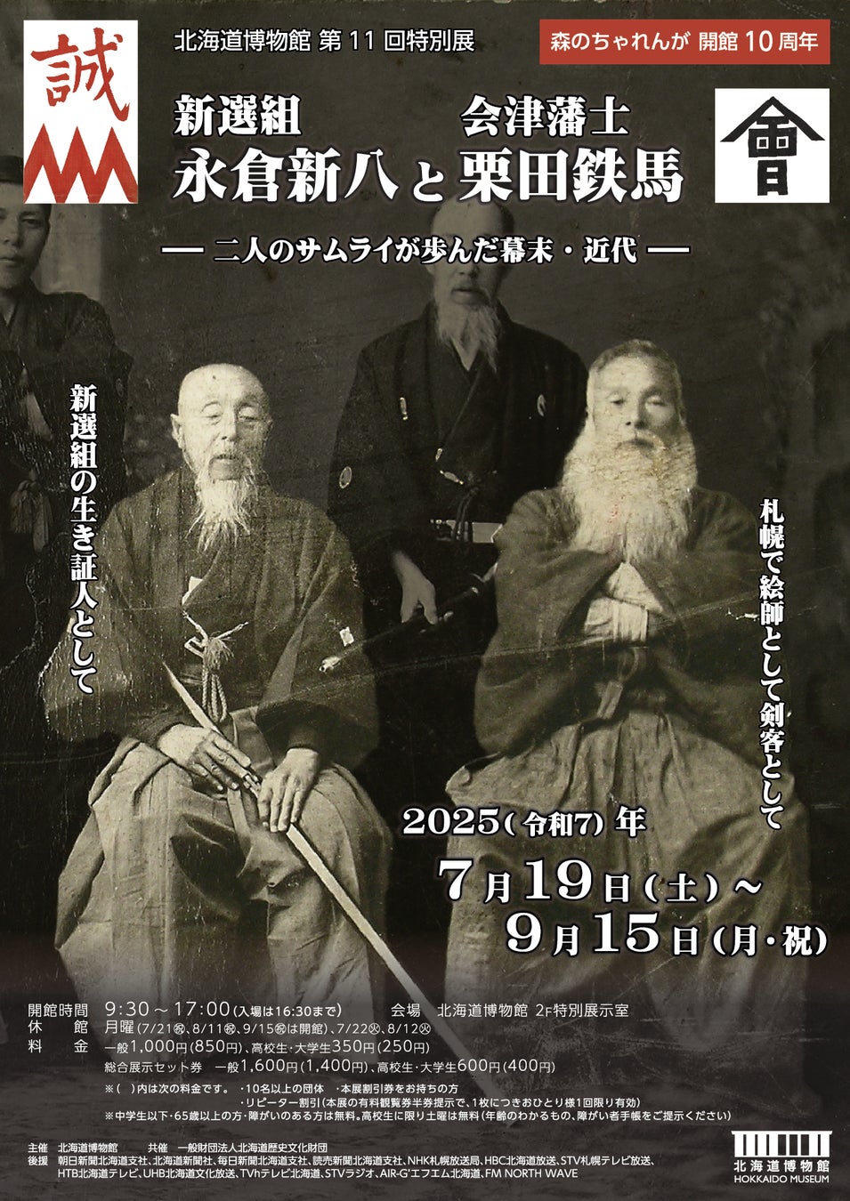 北海道博物館 第11回特別展「新選組永倉新八と会津藩士栗田鉄馬‐二人のサムライが歩んだ幕末・近代‐」:2025年7月19日(土)~9月15日(月・祝)開催