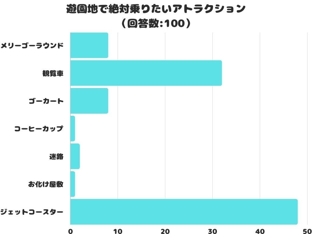 遊園地で絶対乗りたいアトラクションをアンケートにて調査したところ、1位は「ジェットコースター」でした。