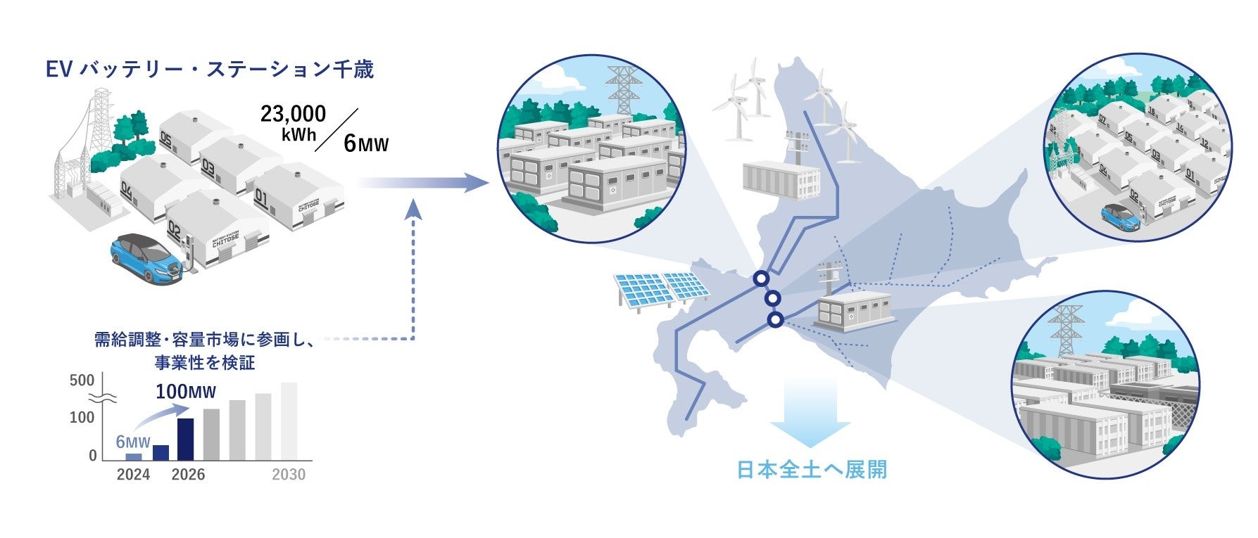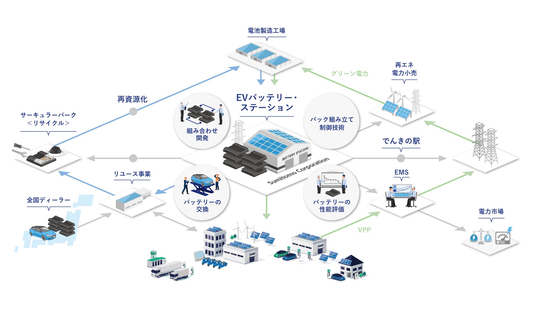 今後は、北海道や九州などの電力系統の安定化が必要とされる地域を中心として、26年度末までに累計で100メガワットの蓄電事業の開発を目指します。住友商事は、「再エネ導入拡大」と「使用済みEVバッテリーの価値最大化」の実現によって脱炭素化を加速するとともに、EVバッテリーの再利用を通じて、持続可能な社会の実現にも貢献していきます。