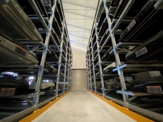 図 4 「EVバッテリー・ステーション千歳」内観(EVバッテリーが専用ラックに並ぶ)