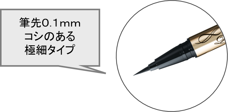 目尻までかすれず、一気に濃密で高発色な美しいラインが描けます。