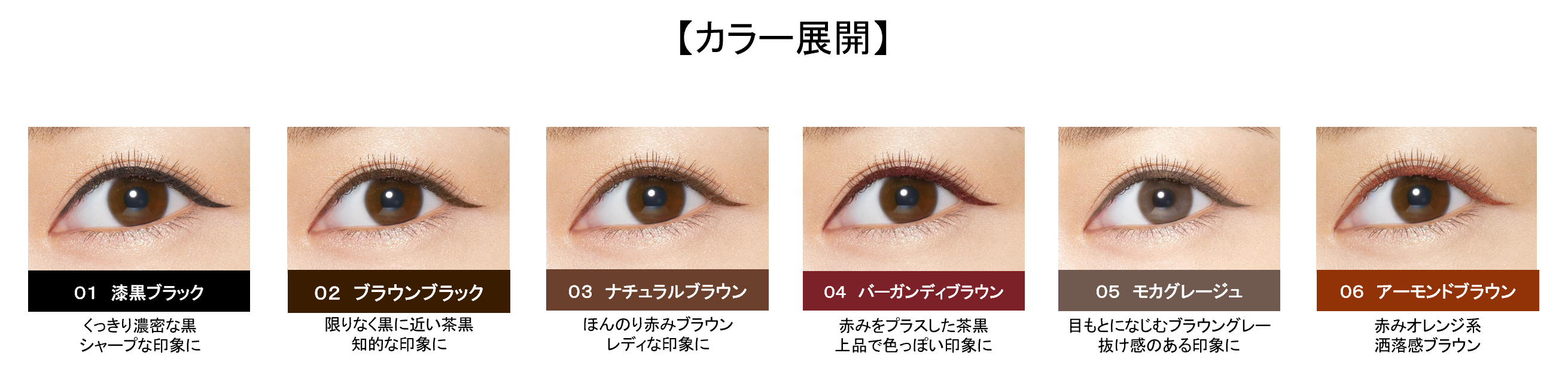 肌なじみの良いダークグレーで、引き締め感がありながらも、やさしげな抜け感のある目もとに仕上がります。