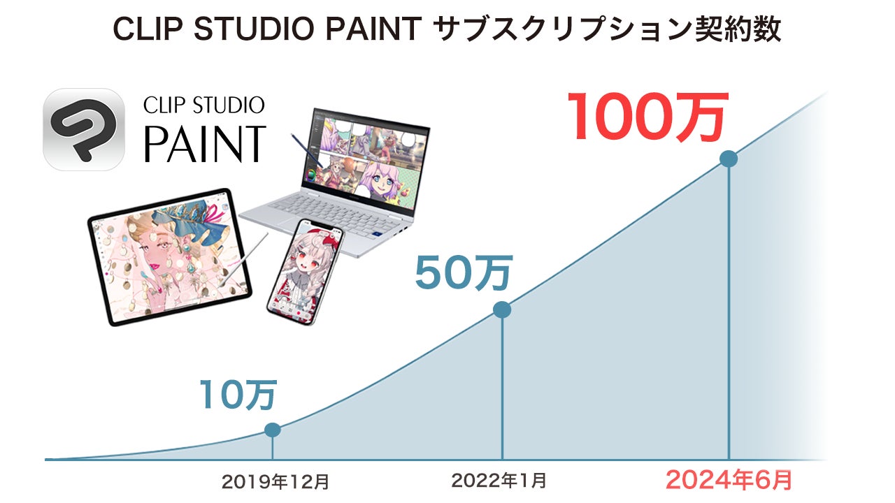 セルシスが開発・提供するイラスト・マンガ・Webtoon・アニメーション制作SaaSサービス「CLIP STUDIO PAINT」の、全世界におけるサブスクリプション契約数が2024年6月に100万契約(*1)を超えました。