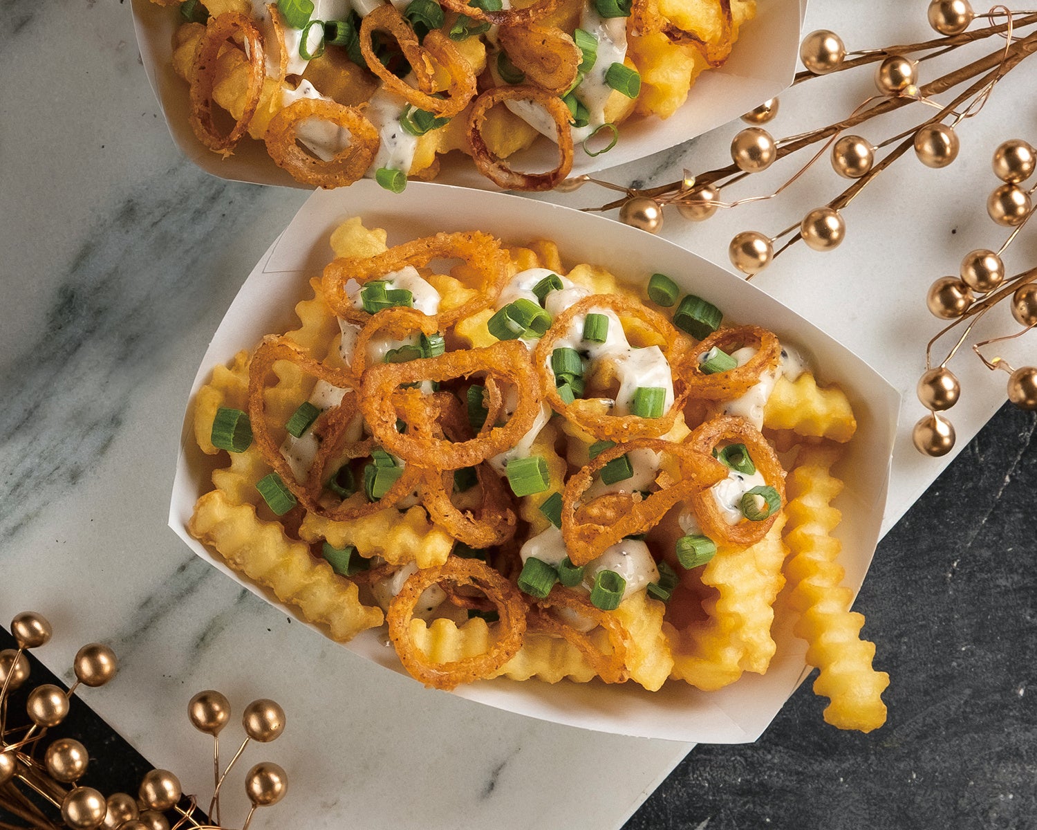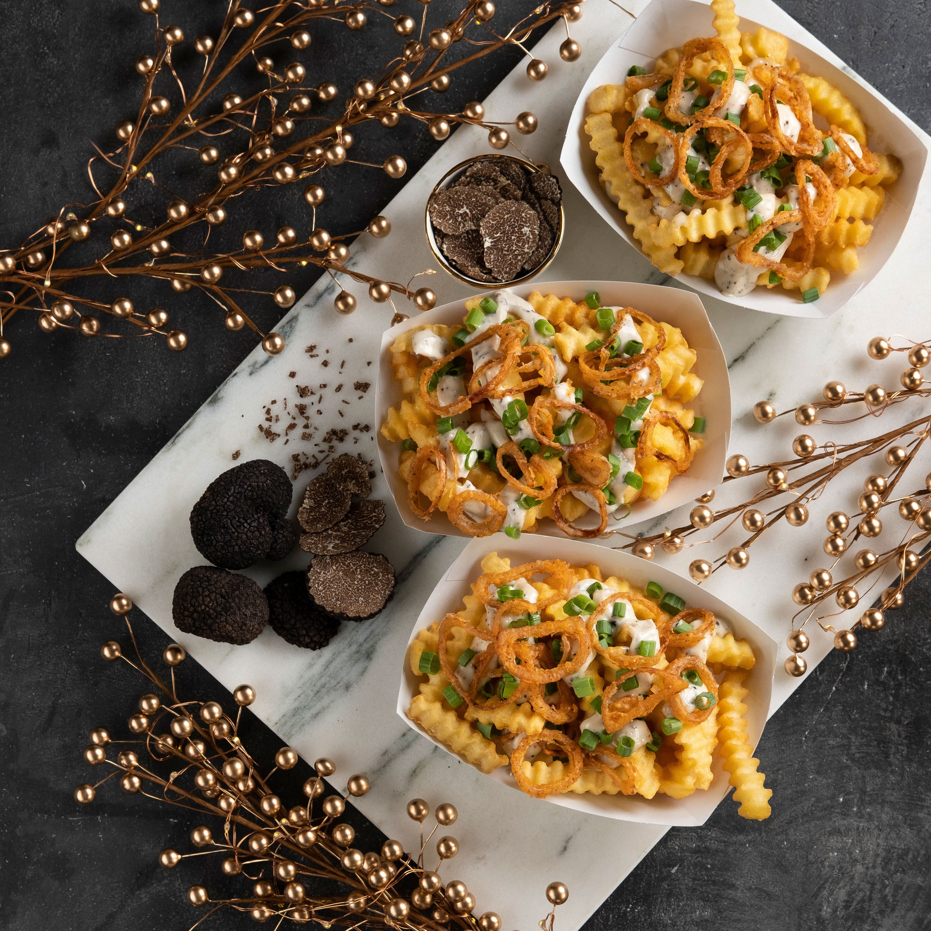 内容:外はサクッと中はほっくりとしたクリンクルカットフライの上に、芳醇な黒トリュフの香りが広がる特製のブラックトリュフ入りマヨネーズ、甘みや食感のあるフライドオニオン、香ばしいねぎをトッピング。