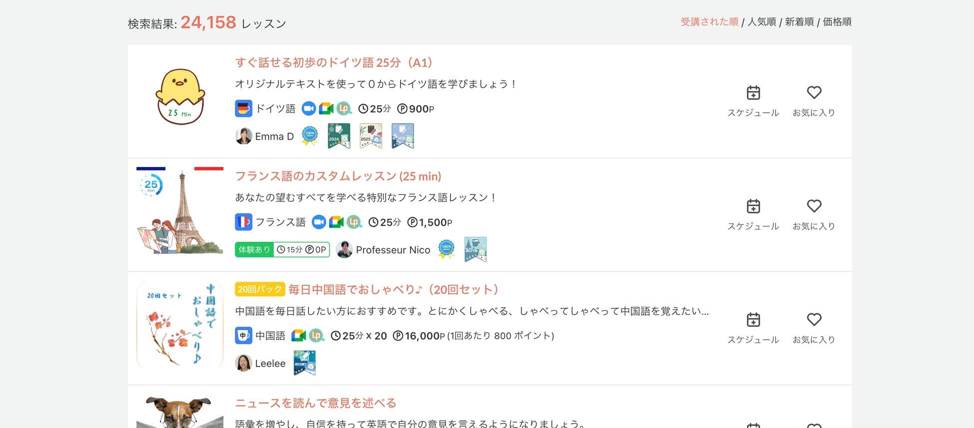 カフェトークのオンラインレッスン一覧:https://cafetalk.com/lessons/?lang=ja