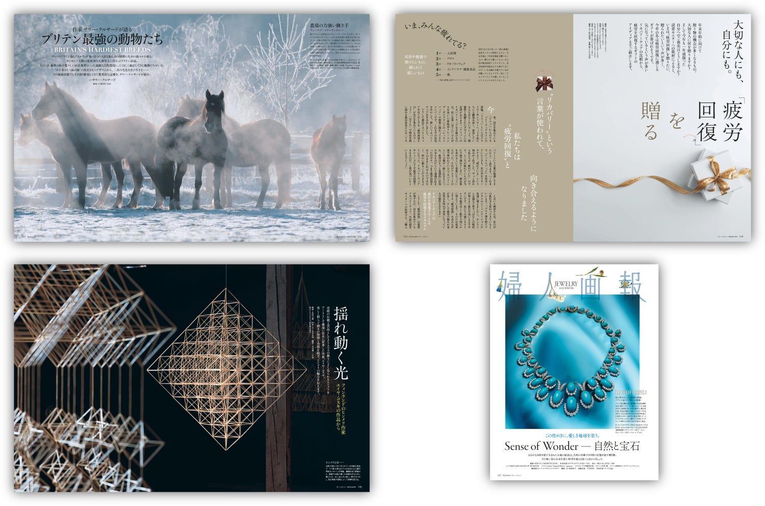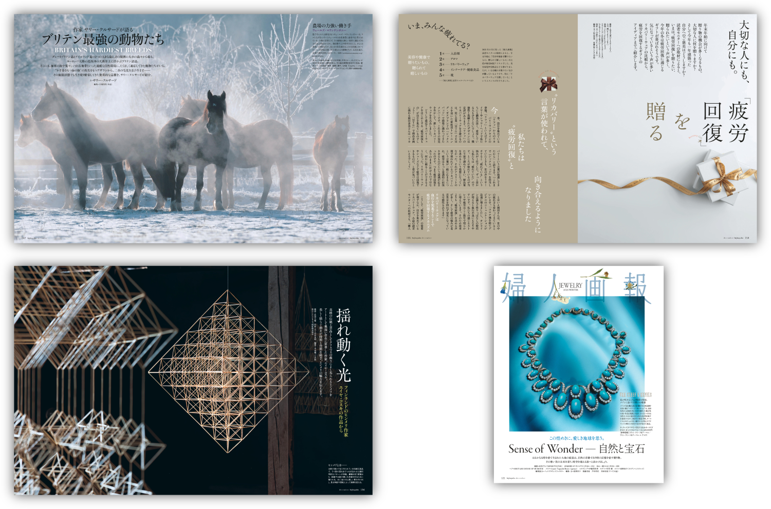 1905年に創刊した『婦人画報』をはじめ、『ELLE(エル)』、『25ans(ヴァンサンカン)』、『Harper’s BAZAAR(ハーパーズ バザー)』。『Esquire(エスクァイア)』などを中心に、ファッション、カルチャー、デザイン、フード、ウエディングなどに関する多数のデジタルメディアの運営と雑誌の発行を手掛けています。『ELLE SHOP(エル・ショップ)』をはじめとするEコマース事業も収益の柱に成長、近年はクライアント企業のマーケティング活動をトータルにサポートする『HEARST made(ハーストメイド)』、データに基づくブランドマーケティング支援を行う『HEARST Data Studio(ハースト データ スタジオ)』を立ち上げるなど、コンテンツ制作における知見にデジタルとデータを融合した企業活動を展開しています。