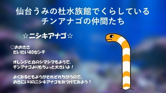 【仙台うみの杜水族館】恒例人気企画!みんな大好きチンアナゴ 11月11日は『チンアナゴの日』【2025年11月1日(土)~11月16日(日)】