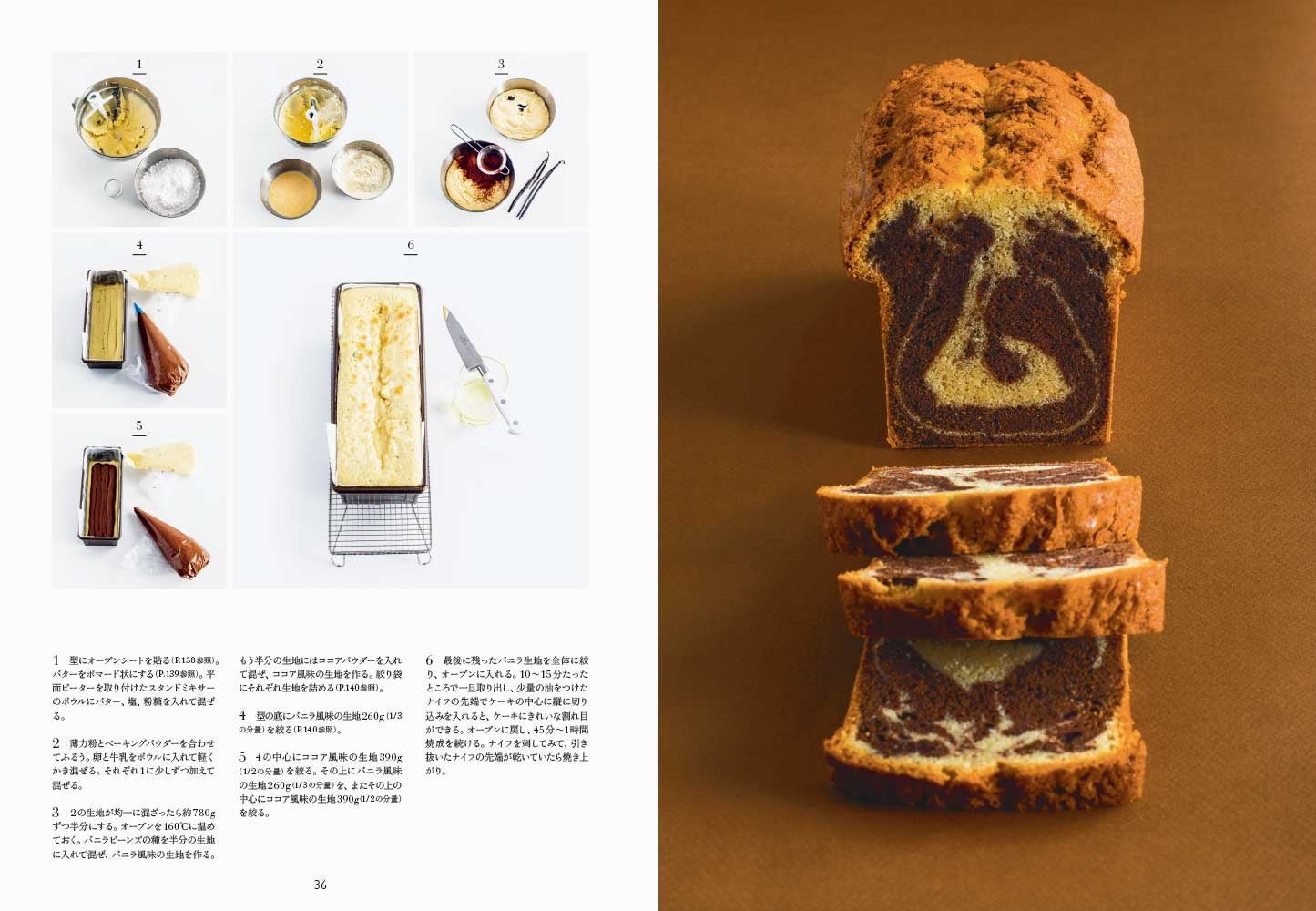 ケーク・オ・ショコラ・エ・ジャンドゥーヤ(ジャンドゥーヤを上がけしたチョコレートパウンドケーキ)/ケーク・マルブレ(マーブルパウンドケーキ)/ケーク・オー・ポワール(洋ナシのパウンドケーキ)/ケーク・シトロン・エ・パヴォ(レモンとポピーシードのケーキ)/キャロット・ケーキ/ケーク・オー・フリュイ・コンフィ(フルーツパウンドケーキ)/ケーク・ロシェ(アーモンドダイス入りチョコレートの上がけをしたパウンドケーキ)/キャトルカール(バニラのパウンドケーキ)/パン・デピス(スパイスのパウンドケーキ)/ケーク・ア・ラ・バナーヌ(バナナのパウンドケーキ)