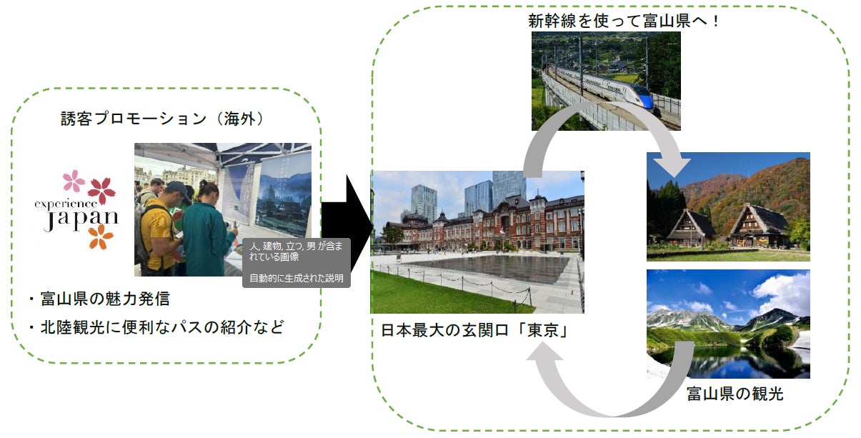 富山県(知事:新田 八朗)と東日本旅客鉄道株式会社(本社:東京都渋谷区、社長:喜㔟 陽一、以下「JR東日本」)は、アイルランド最大級のジャパンイベント「エクスペリエンス ジャパン」に共同出展することで、日本最大の玄関口「東京」に訪れるインバウンド旅行者を富山県に鉄道で誘客するためのプロモーションを行います。 |