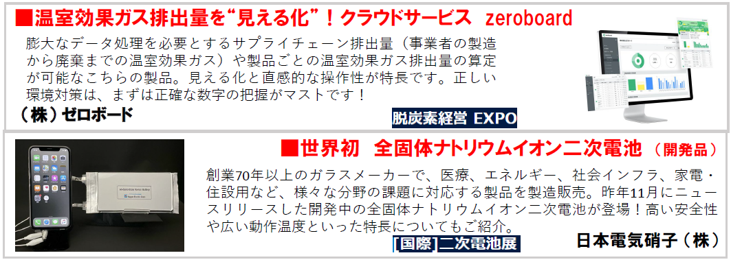- 【見どころ①】待った無しの「エネルギー」「脱炭素」「資源循環」対策ソリューションが一堂に