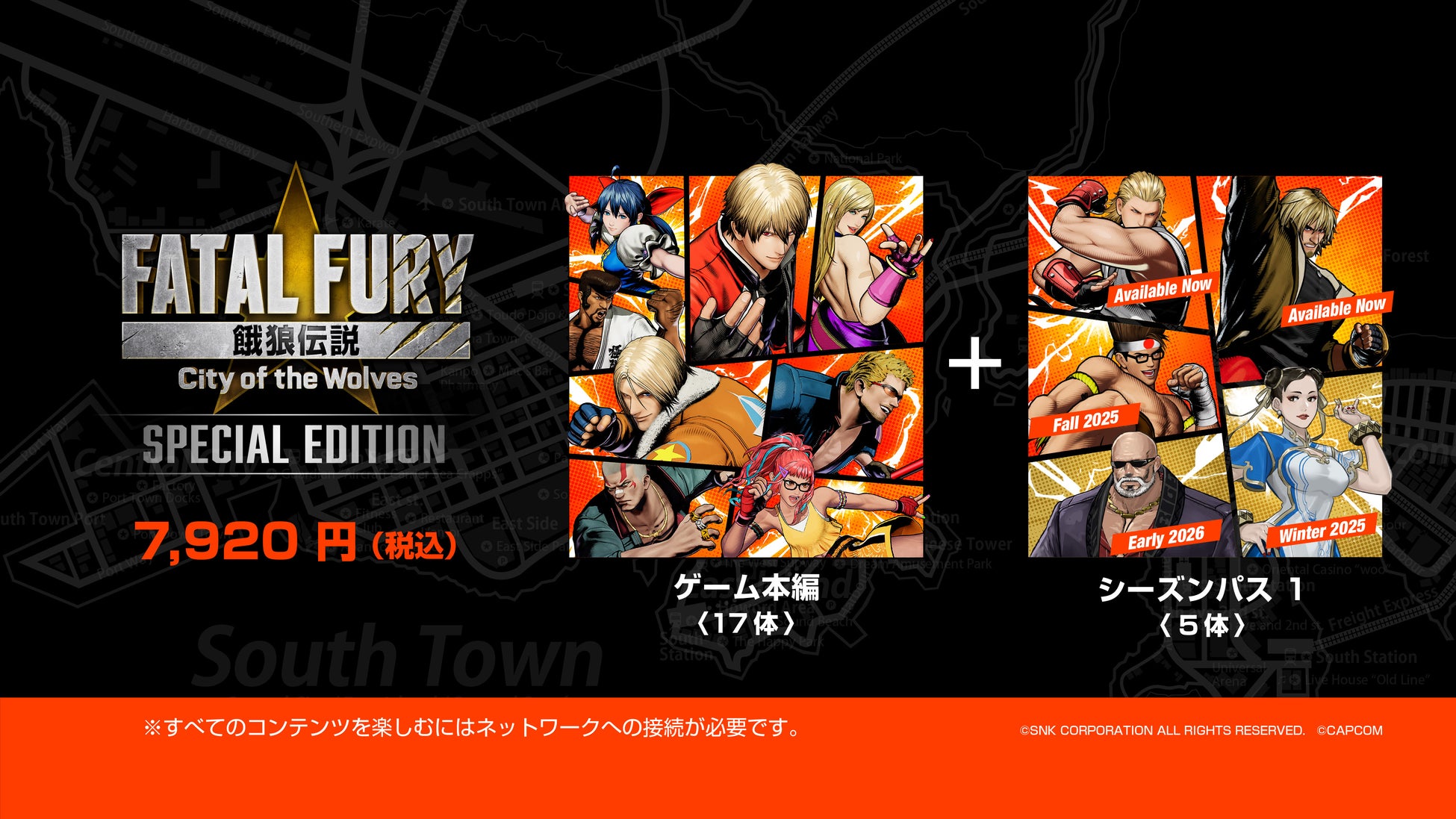 DLCキャラクター「ジョー・東」をはじめ、『ストリートファイター』シリーズの「ケン」、「春麗」などが楽しめるシーズンパス1がセットになった「餓狼伝説 City of the Wolves SPECIAL EDITION」を好評発売中!