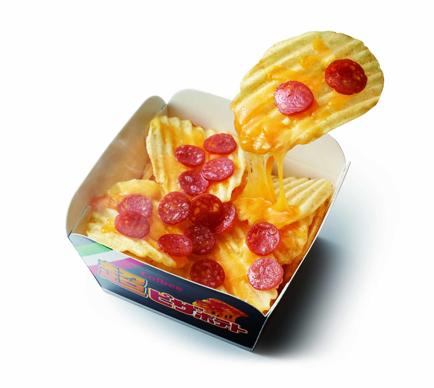 「ピザポテト」のできたてが味わえると大人気チーズとサラミをトッピングしたカルビープラスの『揚げたてポテトチップス 超ピザポテト』が2022年1月25日(火)からリニューアル発売!