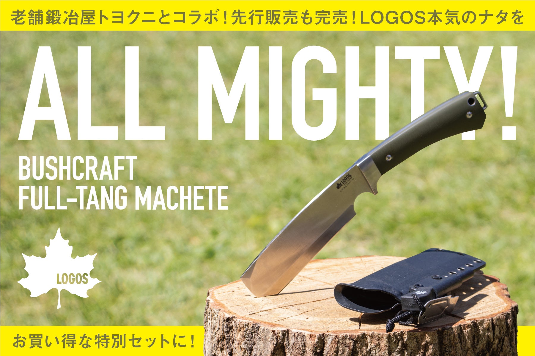 ロゴスこだわりのフルオーダーメイド製!安全性と実用性を追求した本格アウトドア用ナタ「LOGOS ブッシュクラフト フルタング・ナタ」クラファンにて販売開始!