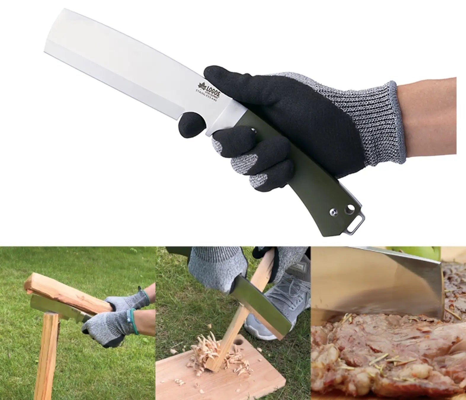 たき火用の薪割りはもちろん、ブッシュクラフトなどの細かい作業や料理など、アウトドアシーンで幅広く活用できる。LOGOSのフルオーダーメイドで実用性をとことん追求した、こだわりの1本。