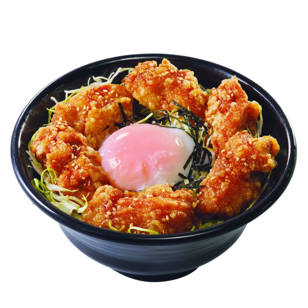 食べやすくカットした「カリッともも」に甘辛ダレをたっぷり、さらに海苔と温玉に絡めて食べる「甘辛温玉からあげ丼」は、ご飯がすすむどこか懐かしさもある馴染み深い丼に仕立てました。