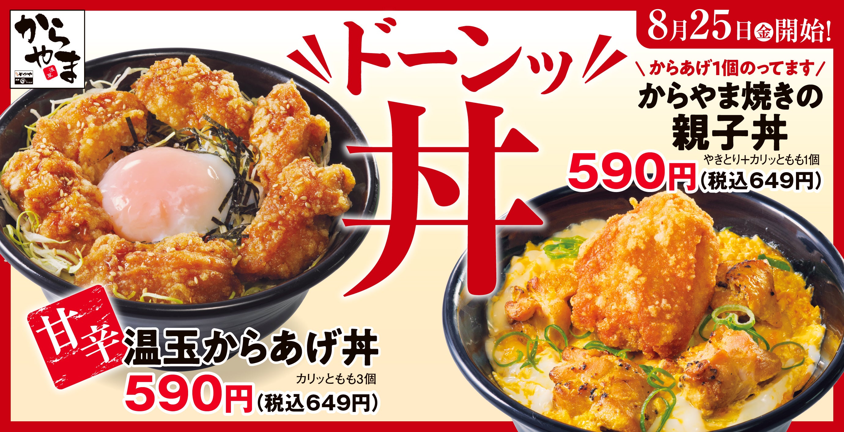 からやま焼きの親子丼や甘辛温玉からあげ丼など3つのメニューが2023年8月25日(金)新登場