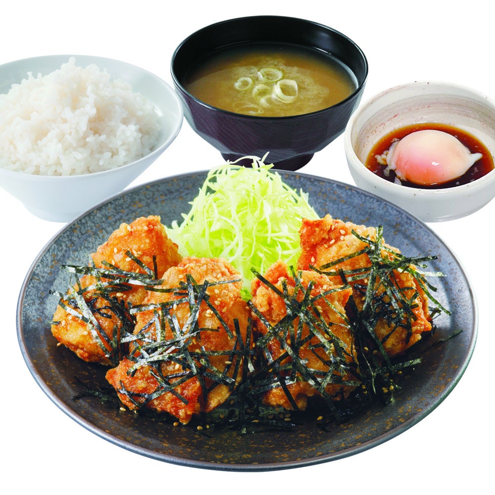 12種類目の定食として登場する「甘辛温玉つけから定食」は、たっぷりの甘辛ダレに海苔を纏った「カリッともも」を温玉にディップして食べる、定食の新定番"つけから"スタイルでお楽しみいただけます。